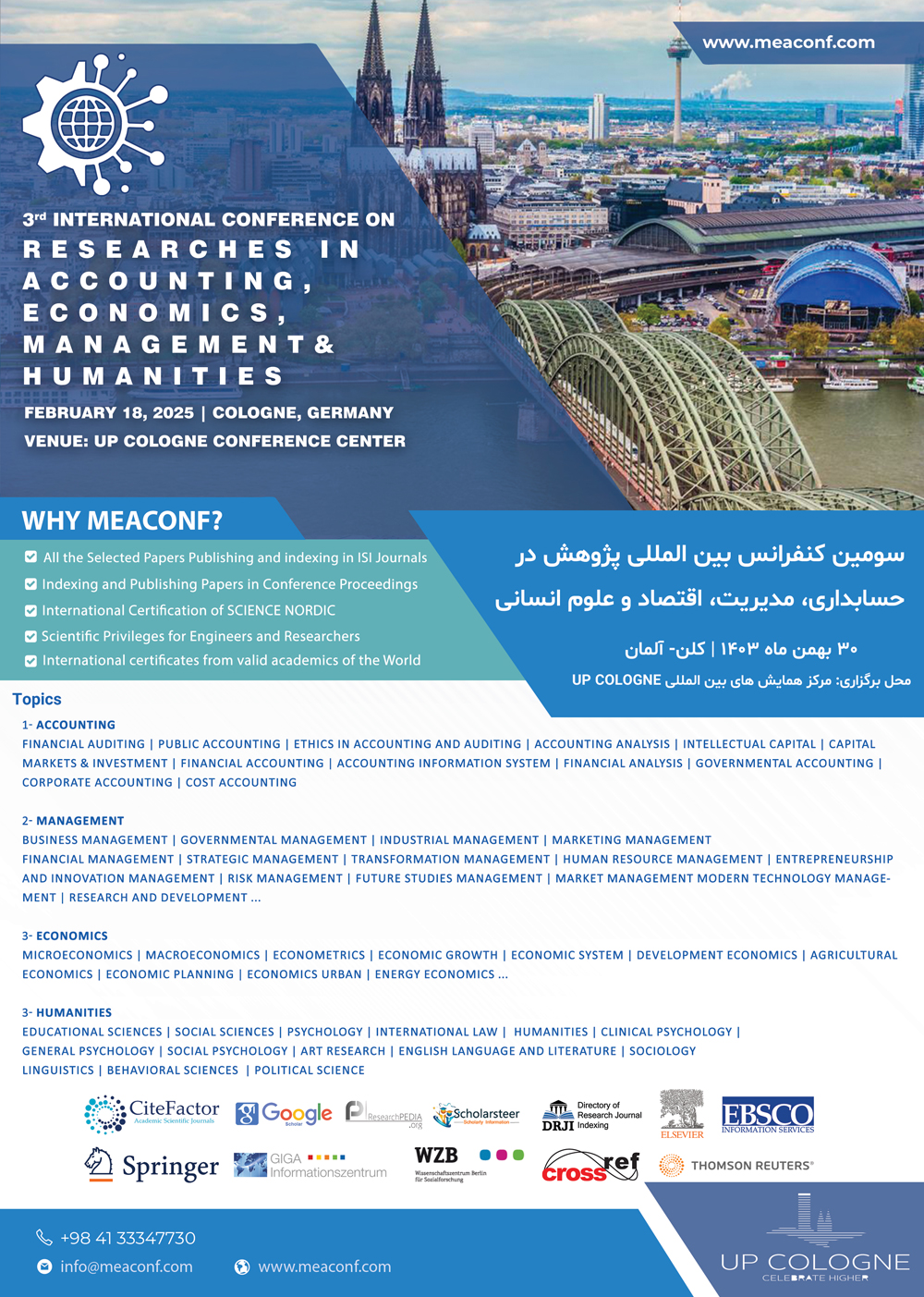 We are delighted to announce the 3rd International Conference on Researches in Accounting, Economics, Management & Humanities , which will be held in UP CENTER Cologne, Germany in 18th February 2025.